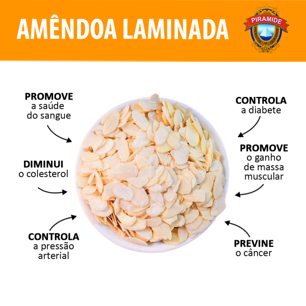 A Amêndoa Laminada 100% Pura – Pirâmide (250g) é uma oleaginosa premium, cuidadosamente fatiada em lâminas finas, ideal para dar um toque sofisticado às suas receitas. Rica em proteínas, fibras, gorduras saudáveis, vitaminas e minerais, a amêndoa laminada é versátil para uso em confeitaria, saladas, granolas, pratos gourmets e snacks.