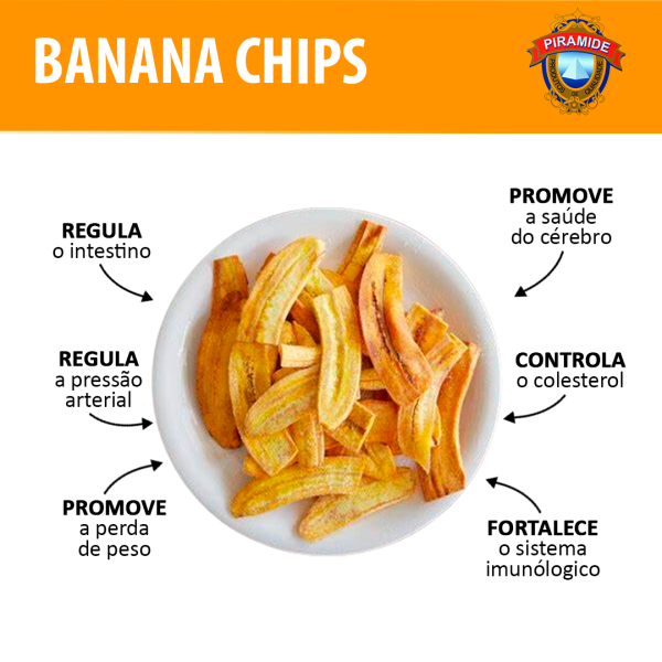 Rica em fibras, potássio e nutrientes essenciais, a banana chips doce pode ser consumida diretamente ou utilizada para incrementar receitas doces, granolas, sobremesas e iogurtes.