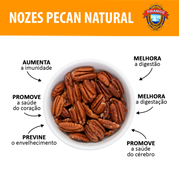 A Nozes Pecan Natural 100% Pura – Pirâmide (250g) é uma oleaginosa premium cuidadosamente selecionada para oferecer sabor autêntico, textura macia e crocante e alta qualidade. Rica em proteínas, fibras, gorduras saudáveis (especialmente ômega-9), vitaminas e minerais, a noz pecan é um alimento natural que contribui para uma dieta equilibrada e saudável, auxiliando na saúde do coração e no bem-estar geral.