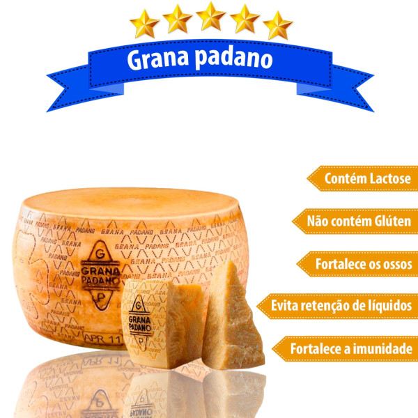 Diferente do Parmigiano Reggiano, o Grana Padano pode ser produzido em uma área mais ampla e apresenta notas mais suaves, tornando-o ideal para uma variedade de pratos, ou para ser degustado puro com vinhos e frutas secas.